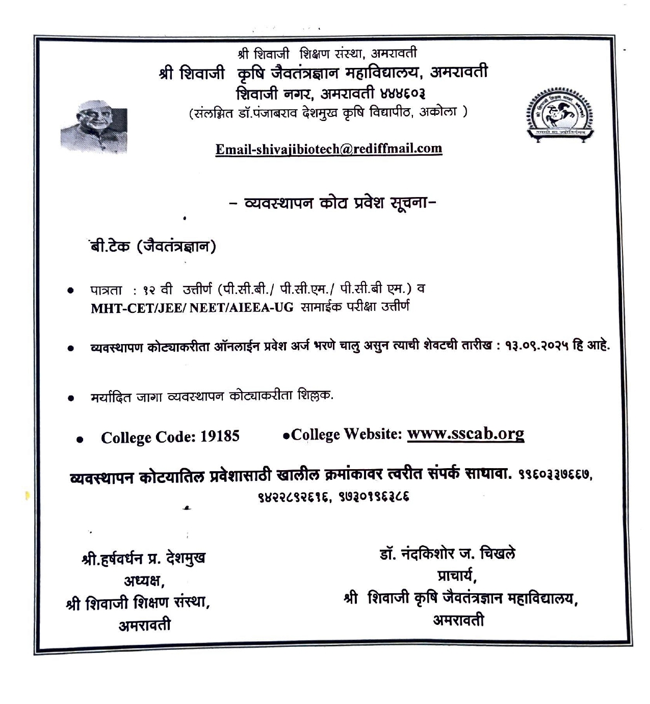 Welcome to Shri Shivaji College of Agriculture Biotechnology,Amravati